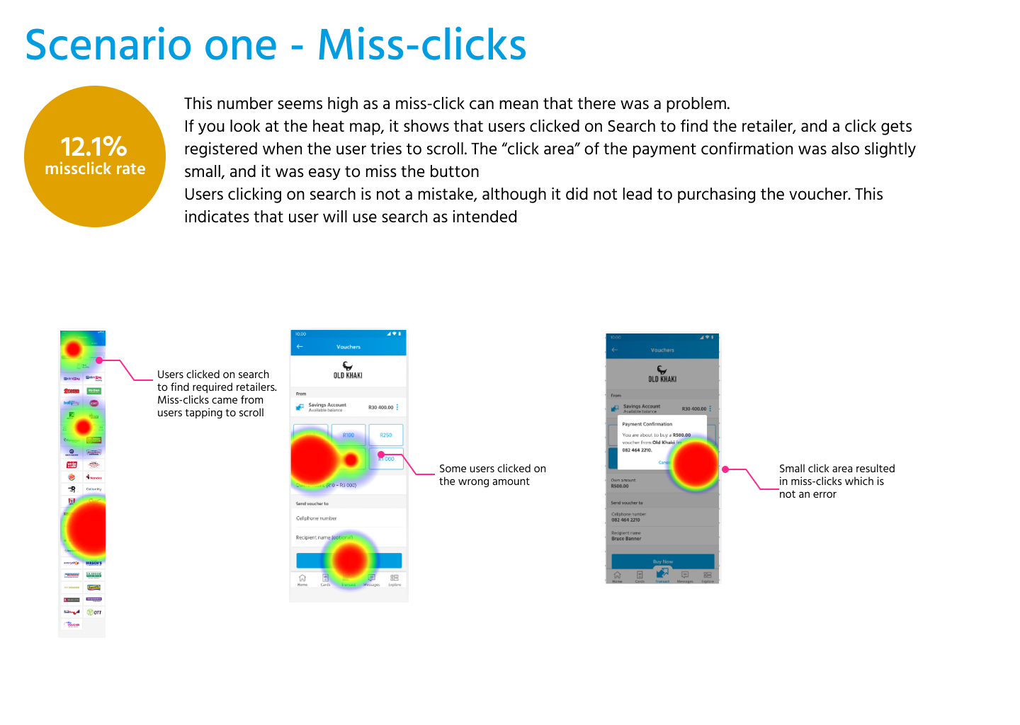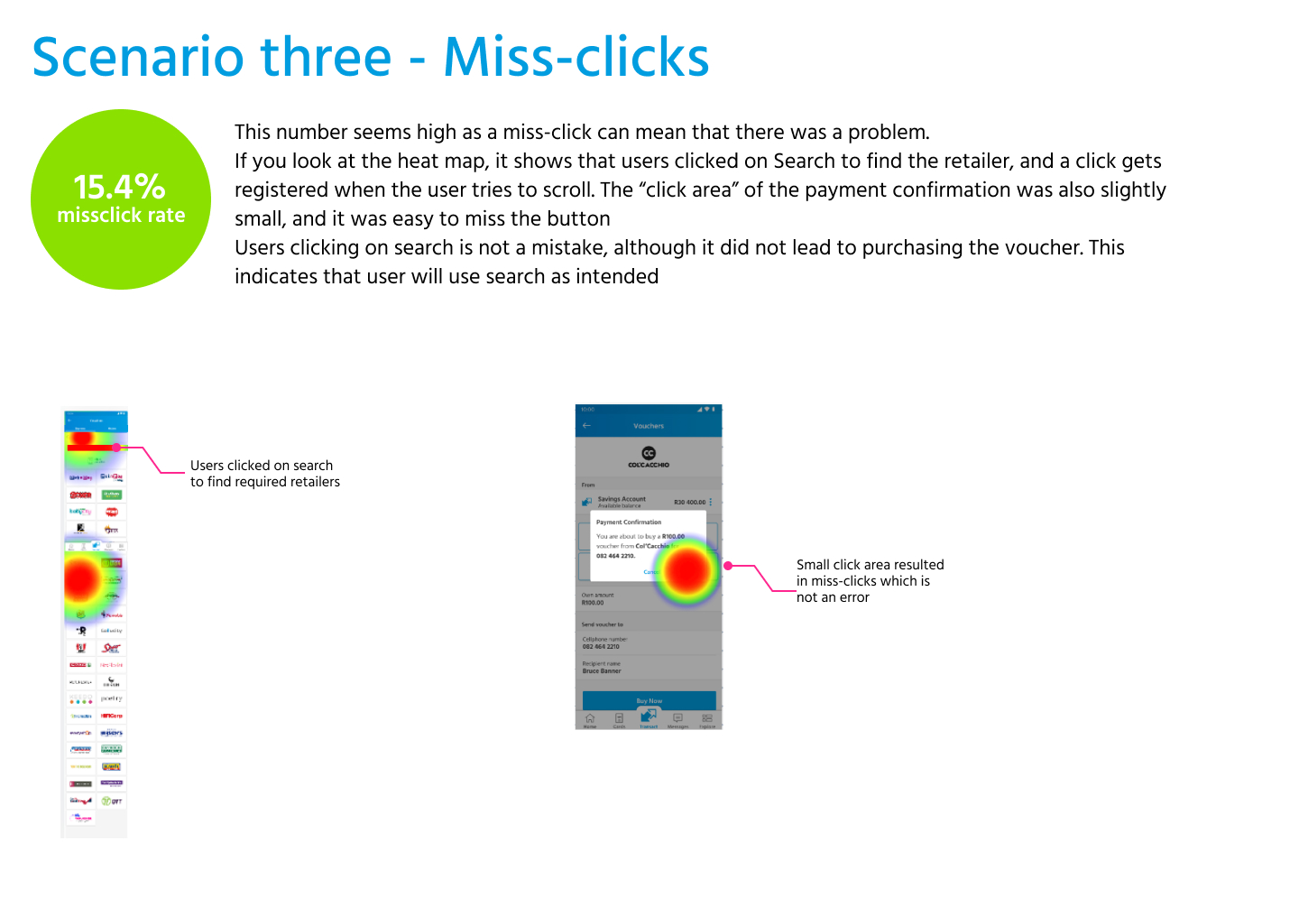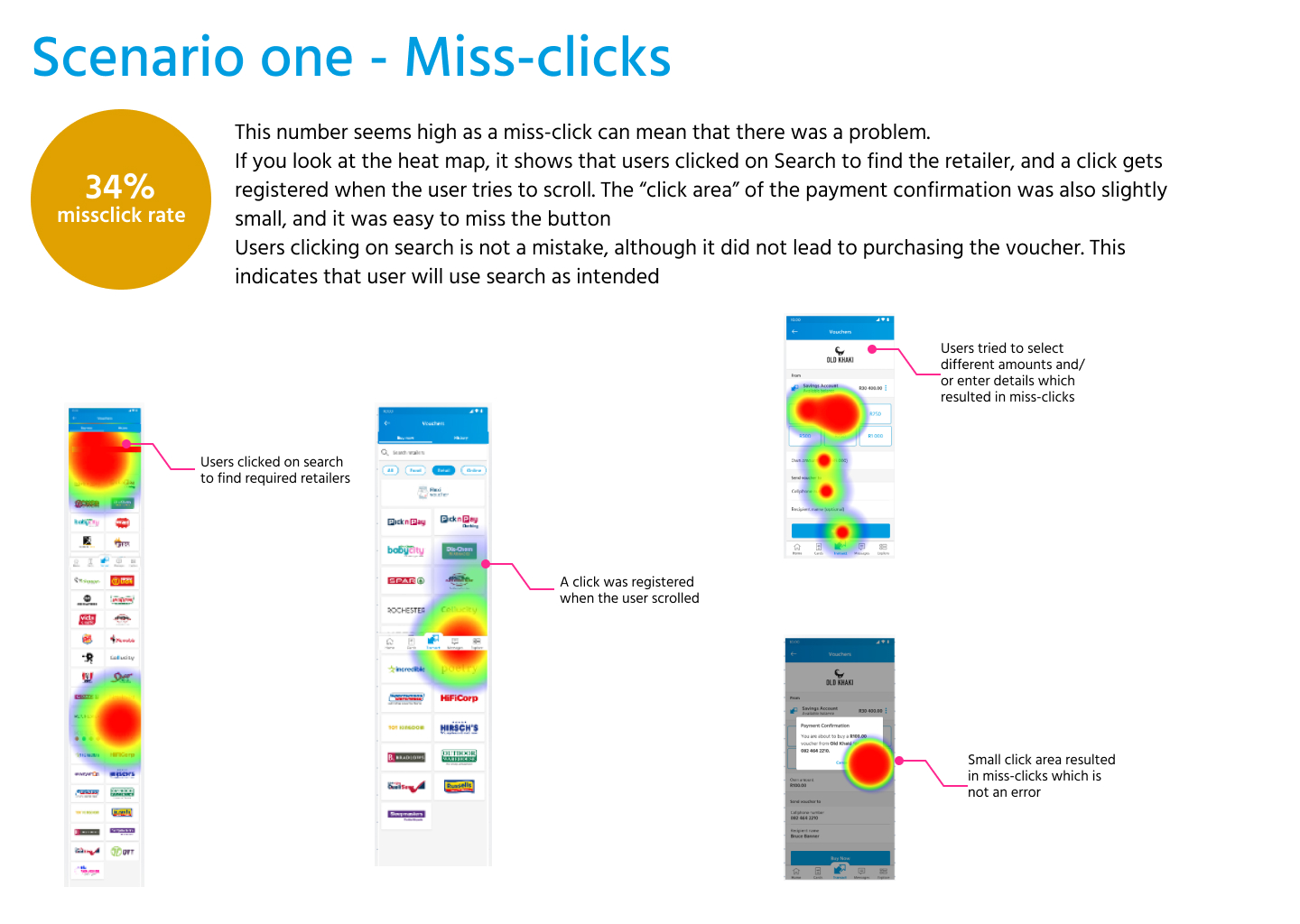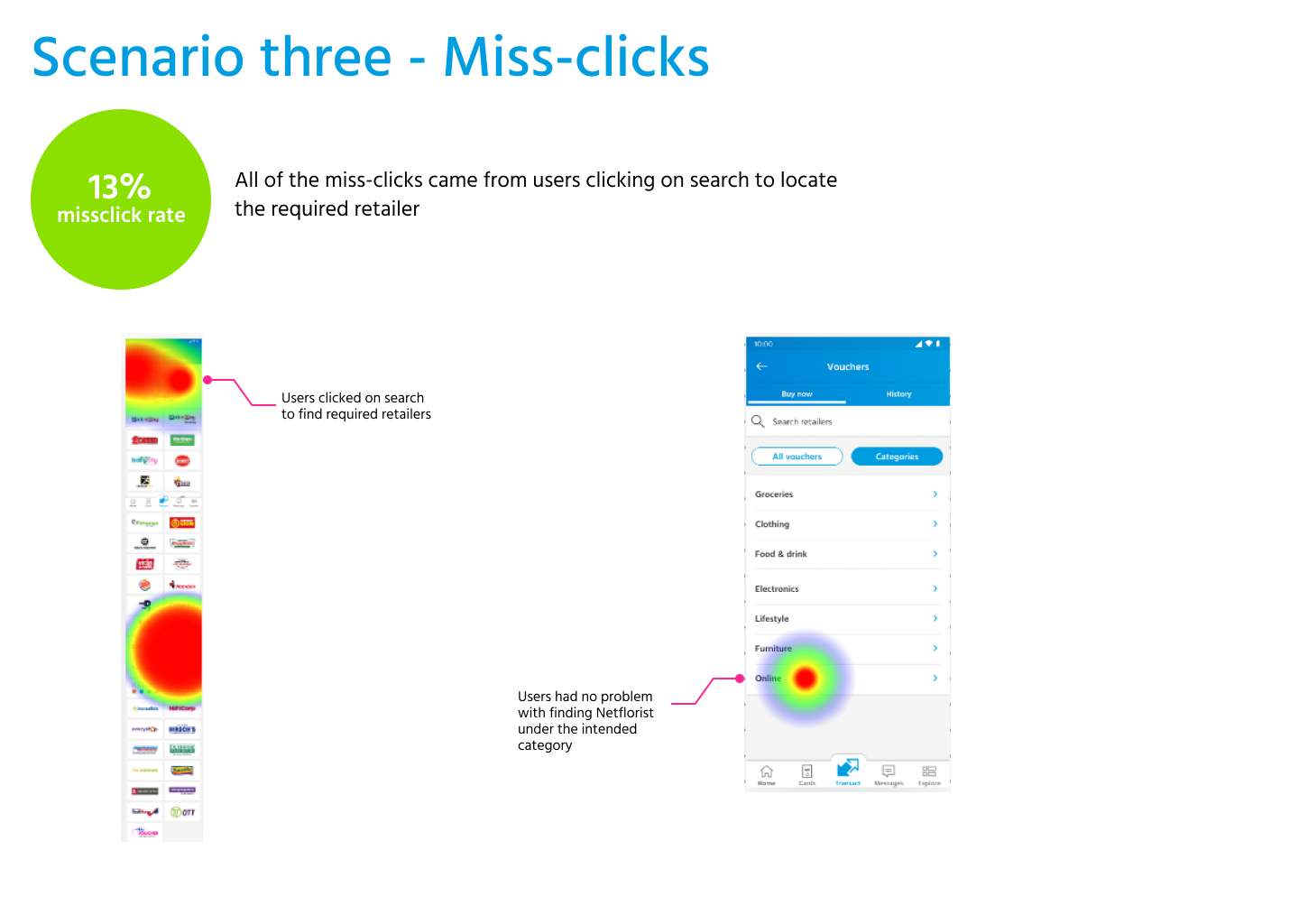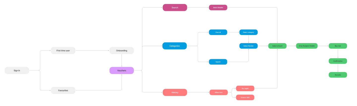 During the test, users were presented with three scenarios, each involving the purchase of different vouchers. For each scenario, two alternative paths were available, offering users different options to reach their end goal.